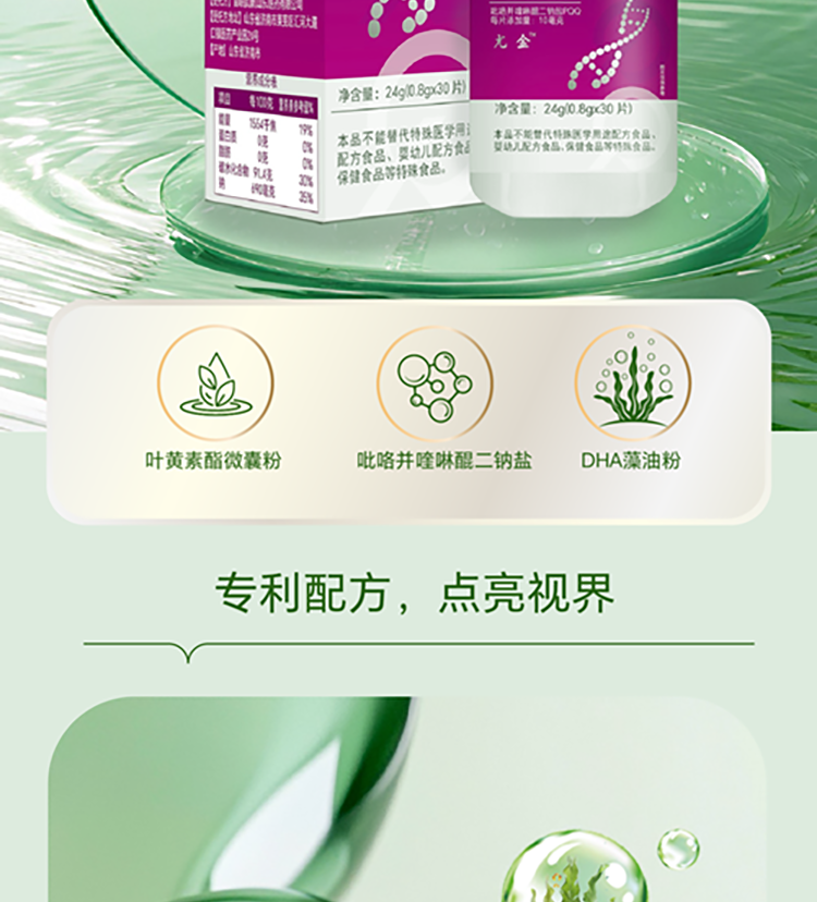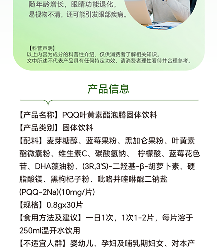 PQQ叶黄素酯泡腾固体饮料 30片/瓶